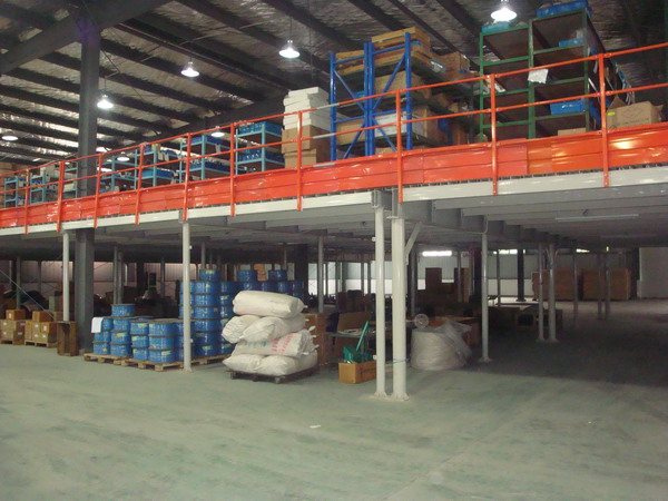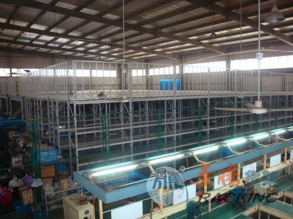 鋼平臺是閣樓貨架的一種,可以將較高的倉儲空間合理規劃,成為多層的空間。我們至騰為春暉集團設計生產的是一層鋼平臺,在鋼平臺的二層,又將其原有的貨架置于鋼平臺上。鋼平臺上放置貨架,對設計要求比較嚴格。因為貨架的所有承載最終會由四個腳轉到樓面,壓力過于集中。樓下是開放式空間,可以擺放任意貨物。