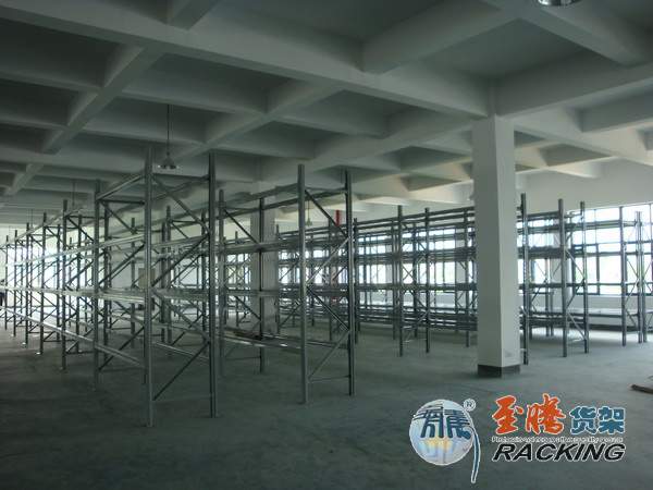 五立柱重型貨架帶槽鋼墊條安裝完畢