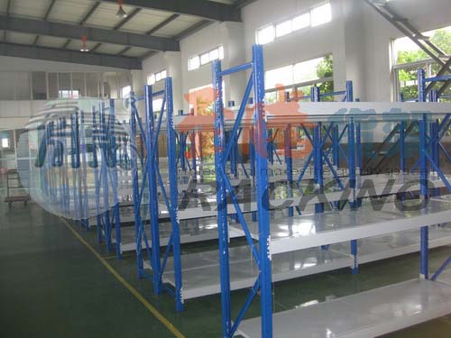 貨架采用藍(lán)柱白板的色彩搭配,一般適合放置清潔整齊的物品,尤其適合箱體。