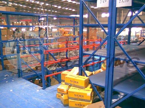 該閣樓式貨架,分為上下兩層,根據客戶的具體擺放要求,貨架的規格和形式也有所不同,一般重的不易搬放的貨物放置于一層。