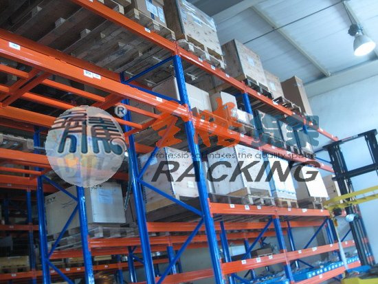 為了提高倉庫的空間利用率,過道還放置了過道貨架,叉車在過道下通行,上層空間依然可以存取貨物。