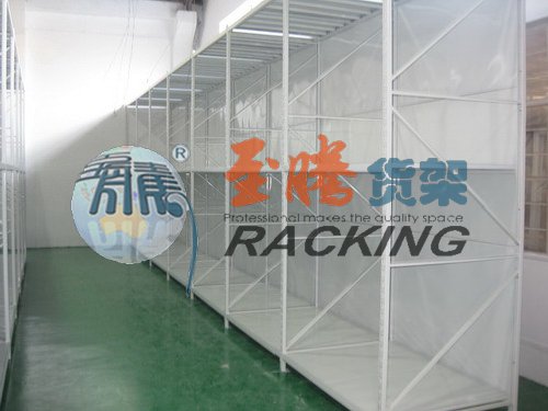 這批輕型貨架的寬度較大,客戶需要其能夠有背網(wǎng)將貨物分隔起來。