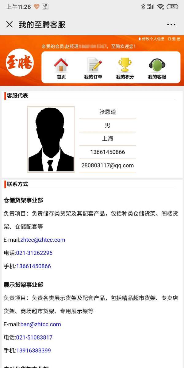 【我的客服】,展現會員最后一次下訂單時的服務人員的詳細信息。
