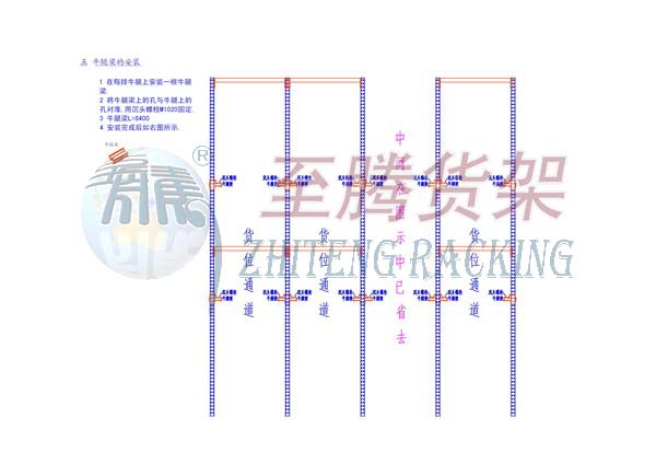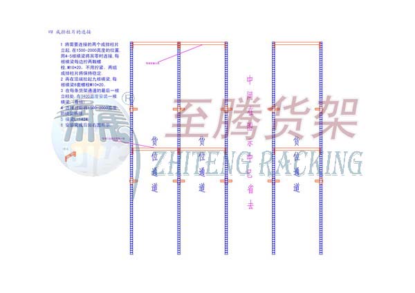 3 在每條貨架通道的最后一根立柱處,在3400高度安裝一根橫梁.(靠墻)
