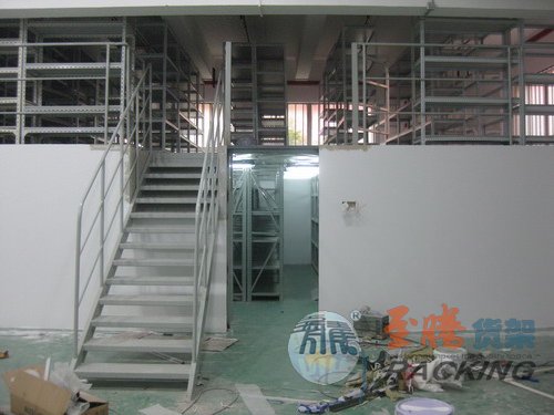 一般我們至騰及其它專業的老牌貨架公司,在設計閣樓時,通常會選擇穩定性和承載能力強的閣樓式貨架。但應客戶要求,此次我們使用的是閣樓平臺上放置貨架的方式。